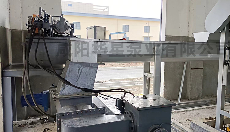 市政污泥儲運系統是針對含水率80%市政污泥儲存,和輸送進行下一步污泥干化處理的系統。該系統由:污泥儲存料倉,液壓破拱滑架,雙螺旋,污泥輸送泵,電器自控系統組成。由PLC控制,操控簡潔,全系統一鍵啟動,倉門打開自動進料,雷達料位控制,液壓破拱滑架運行破拱,雙螺旋出料,粘稠物料泵輸送到干化系統,也可由粘稠物料泵輸送污泥到儲存料倉存儲。該系統密封良好,無氣味泄露,也可對膏狀危廢,餐廚垃圾,粘稠油泥進行儲存和輸送。